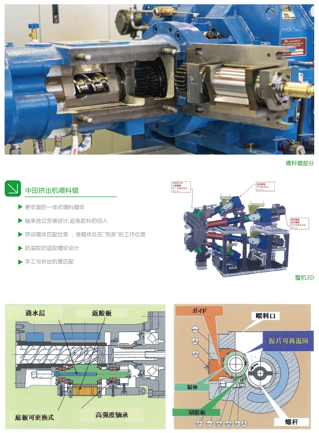 機(jī)頭的獨(dú)特設(shè)計(jì)、一體式喂料輥、齒輪泵